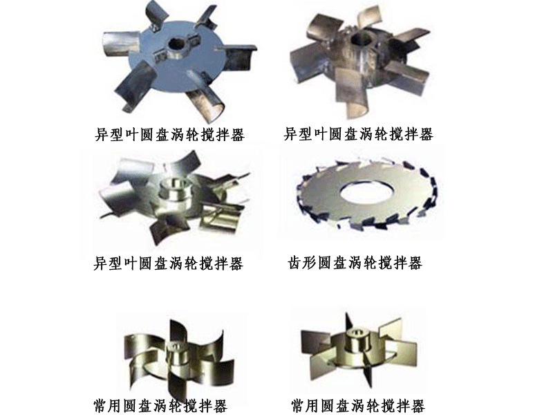 常用圓盤渦輪式攪拌器較之開啟渦輪式攪拌器,基本流型相同,同樣具有高剪切能力和較大的循環(huán)能力,區(qū)別在于中部多一圓盤,下面可以存一些氣體,使氣體分散更平穩(wěn),所以在氣體分散吸收過程中,它是很適合的。斜葉具有傾角,有軸向分流:彎葉具有后角,排出性能好,動力消耗低;螺距葉既有傾角又有后角,流型和性能部分差異。常用介質(zhì)粘度μ<5×104cP,常用運(yùn)轉(zhuǎn)速度n=10-300rpm,v=4-10m/s, 高轉(zhuǎn)速可達(dá)600rpm,常用尺寸DJ:L:b=20:5:4,DJ/D=0.2-0.5,斜葉傾角45°,60°,后彎角=45°。